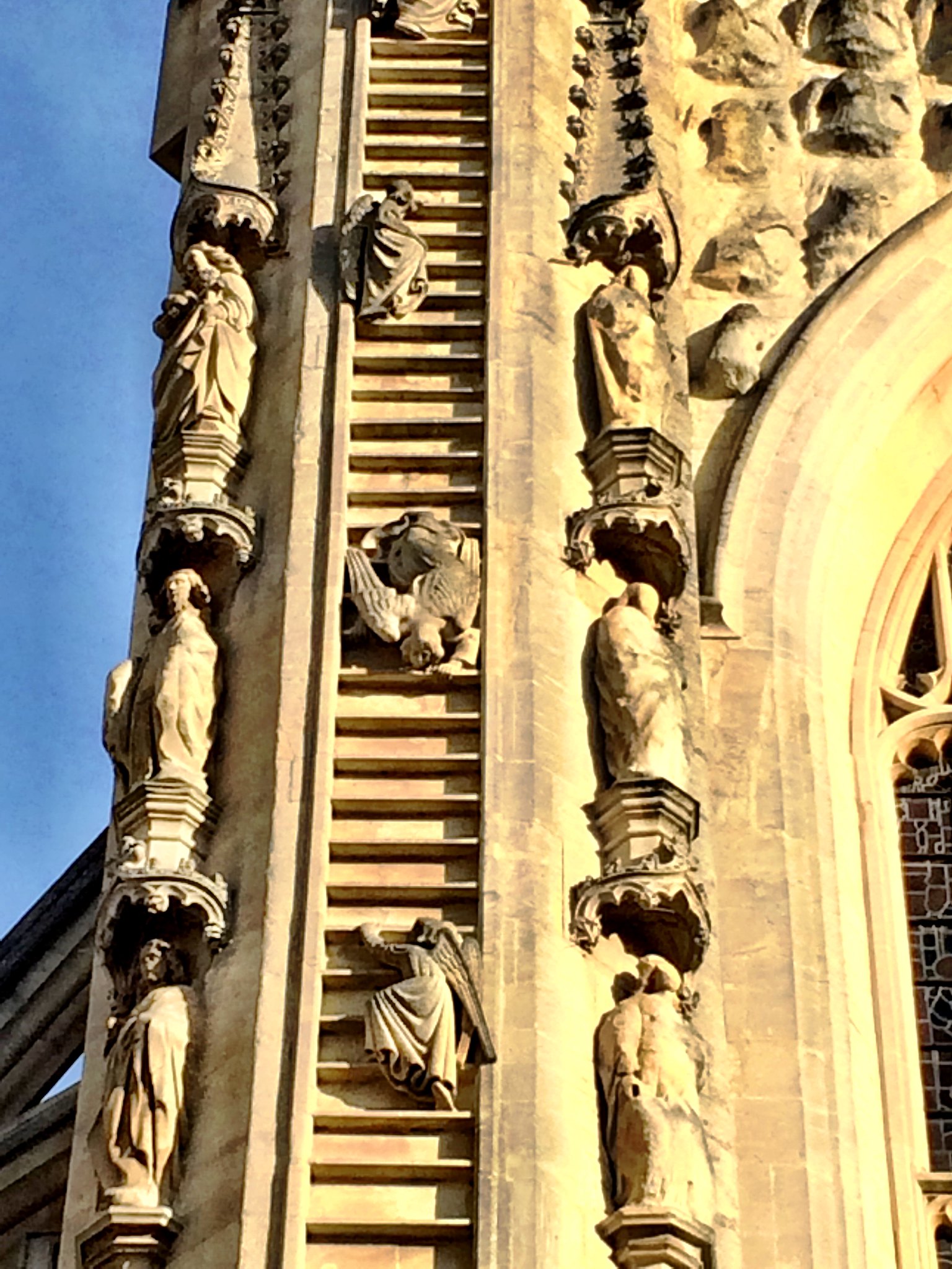 Stand in front of the ornate wooden door and look at the Jacob’s Ladder carvings either side. Most of the figures are angels climbing up to heaven, but some are crawling down. Are they angels or demons?