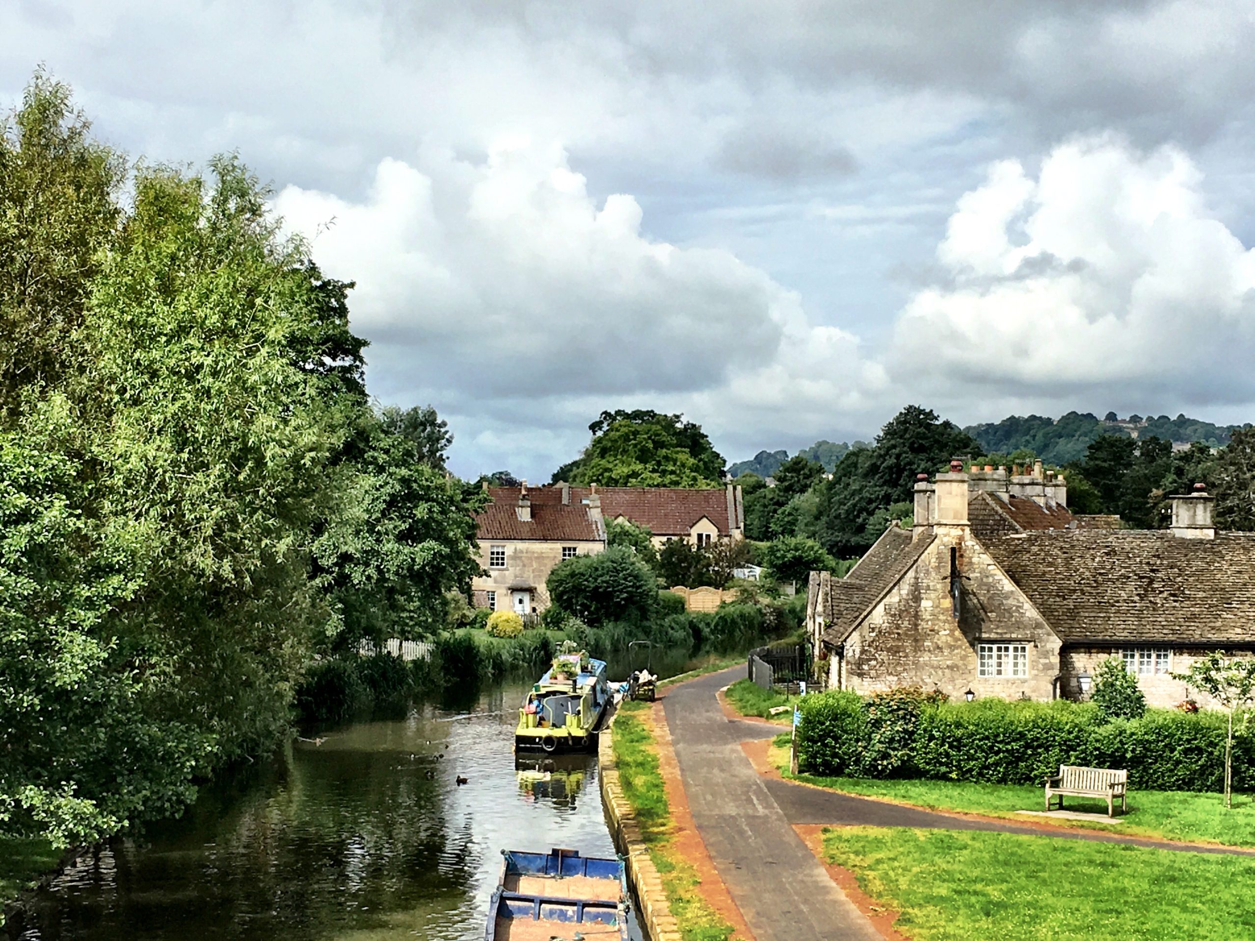 When you get to Bathampton, there’s a row of charming houses with beautiful gardens in the summer.