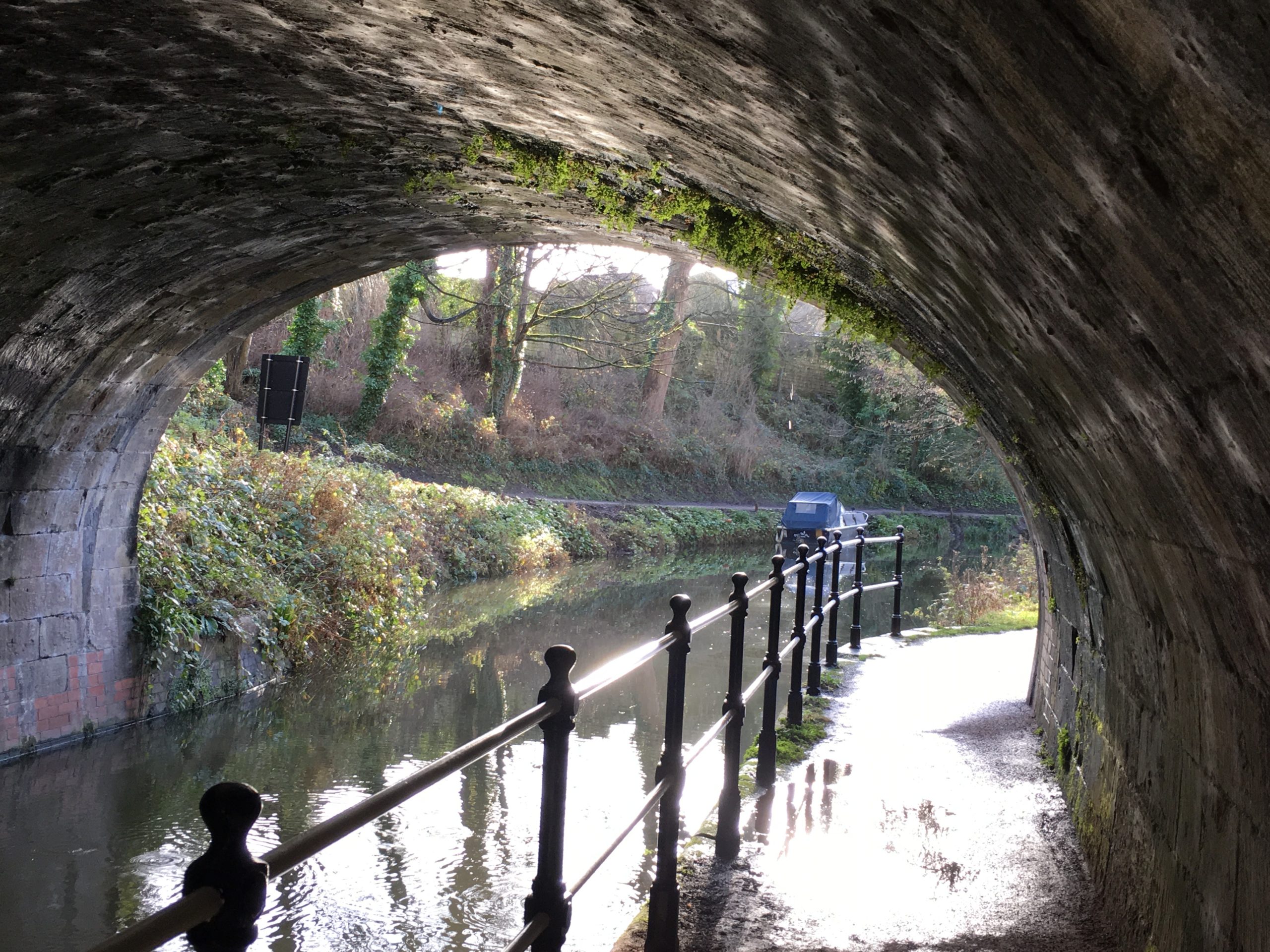 Cross the road on the zebra crossing and go down the cobbles on the other side. Walk along until you reach the first tunnel, where you cross over the canal, and descend back on the other side.