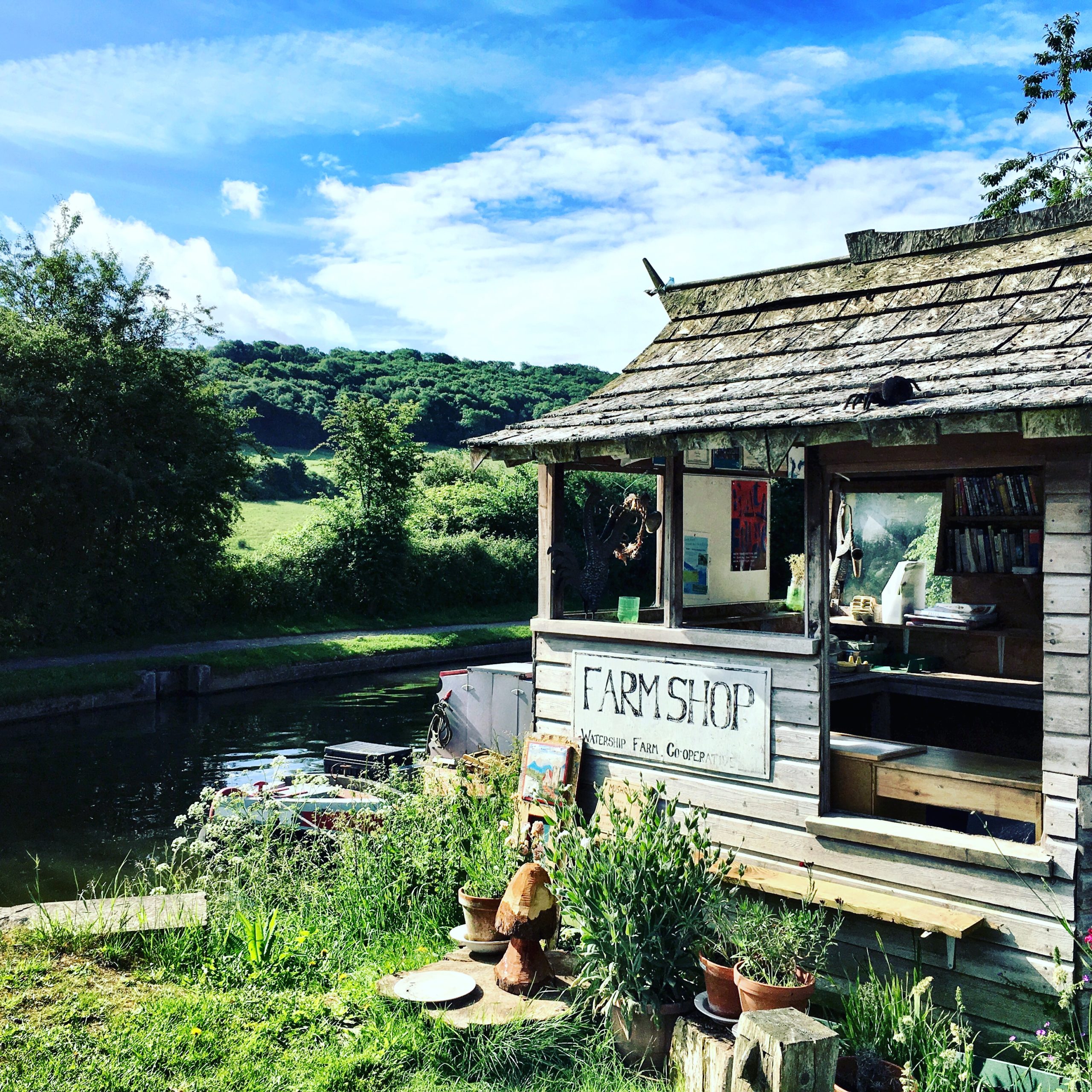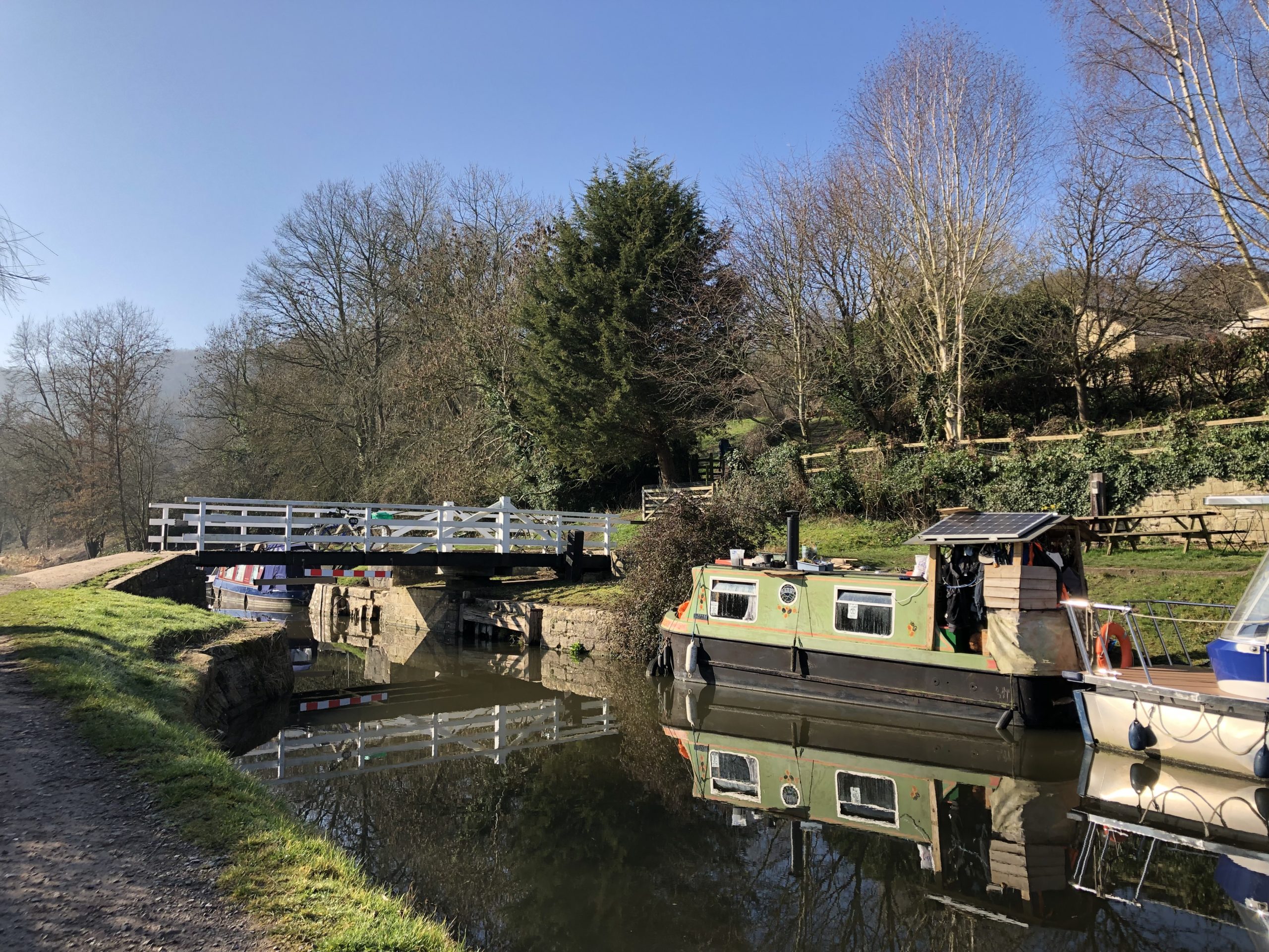 On the approach to Dundas aqueduct, you’ll find some permanent moorings with little gardens, and another swing bridge with a cute little community farm shop. It’s rarely open but it’s certainly photogenic!