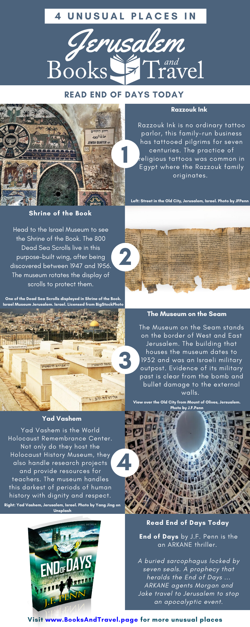Because of the city’s religious significance, I set both Stone of Fire and End of Days in Jerusalem and it continues to inspire my writing.
